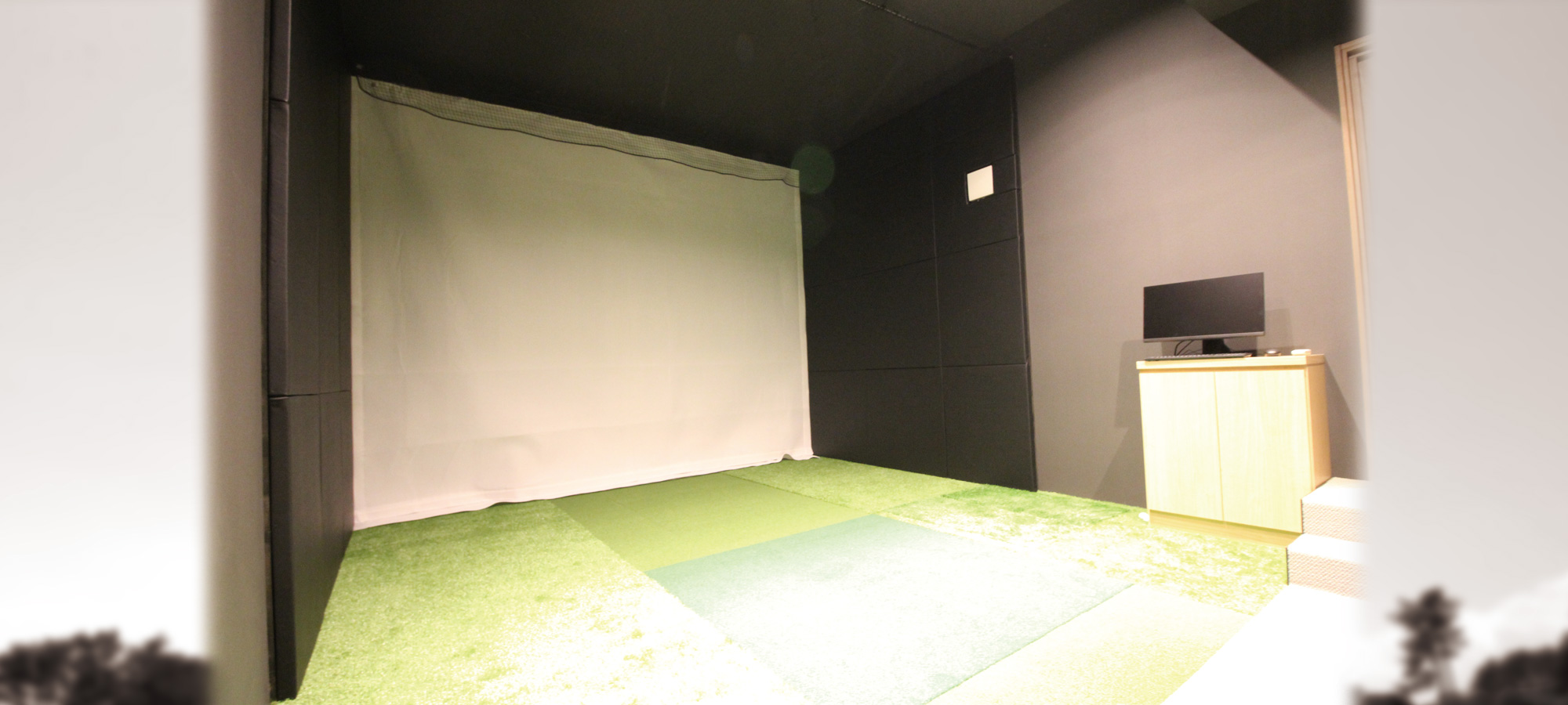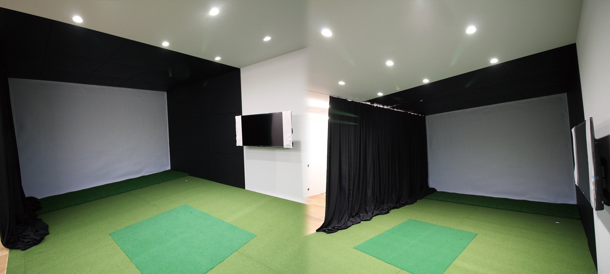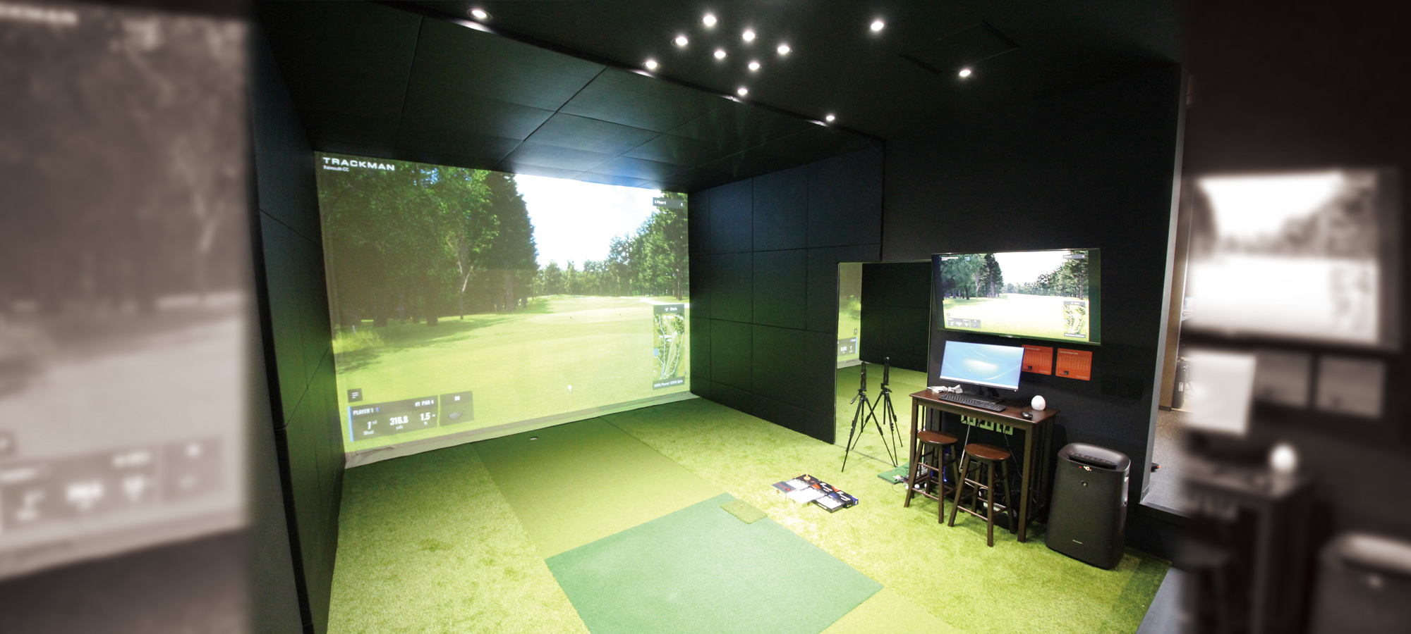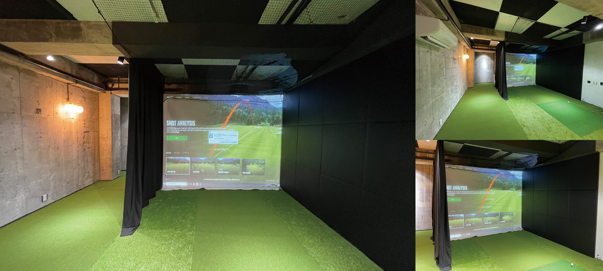 Blackを記帳としたネットによるゴルフ専用部屋。後方の壁には、雰囲気を醸し出すためにコース写真を特殊印刷した壁紙を採用