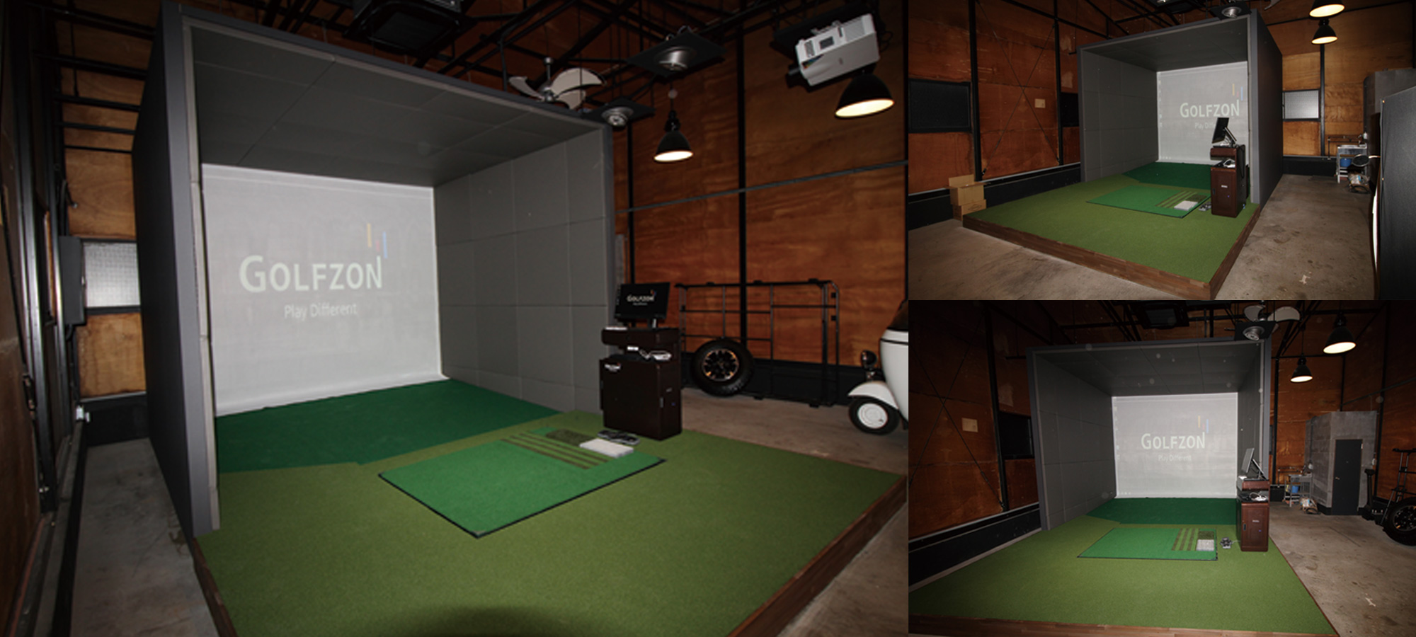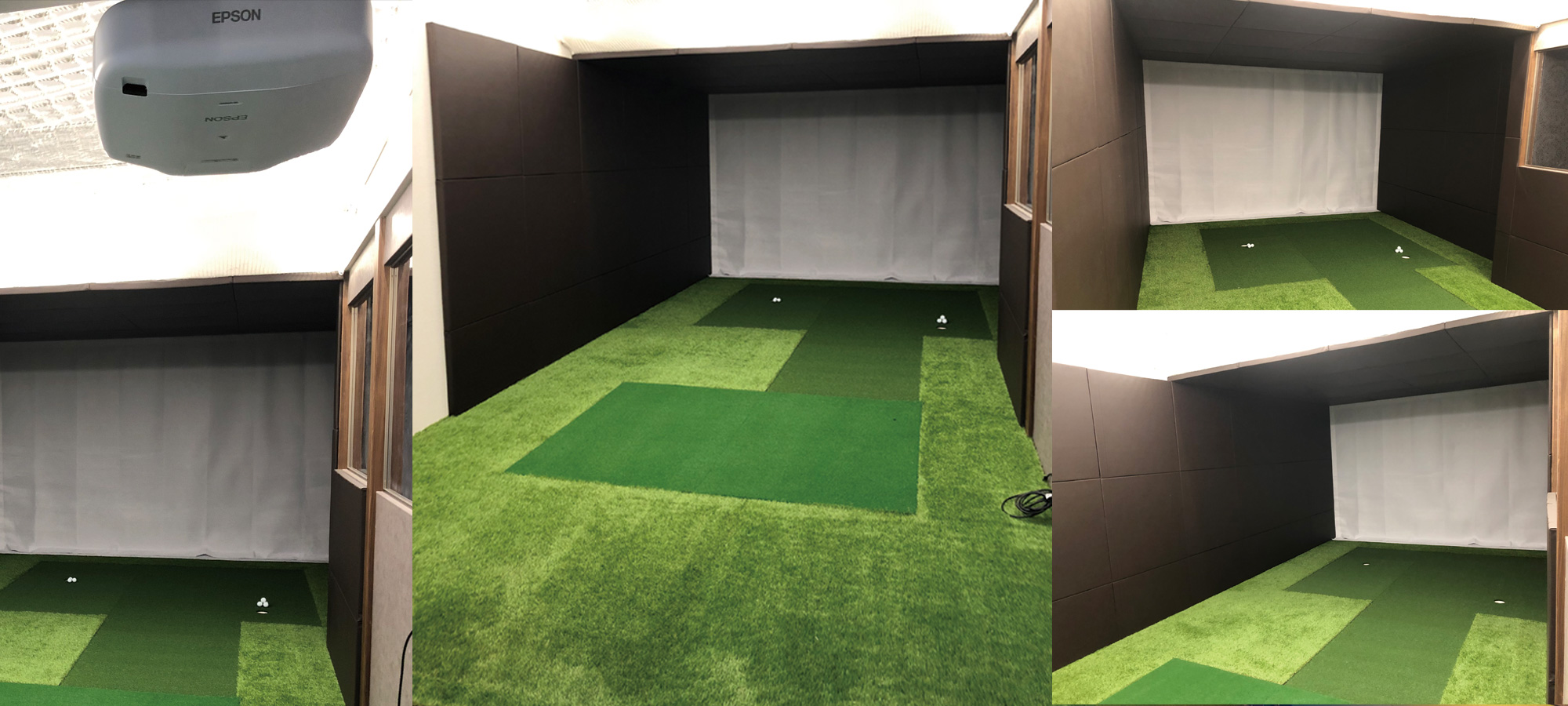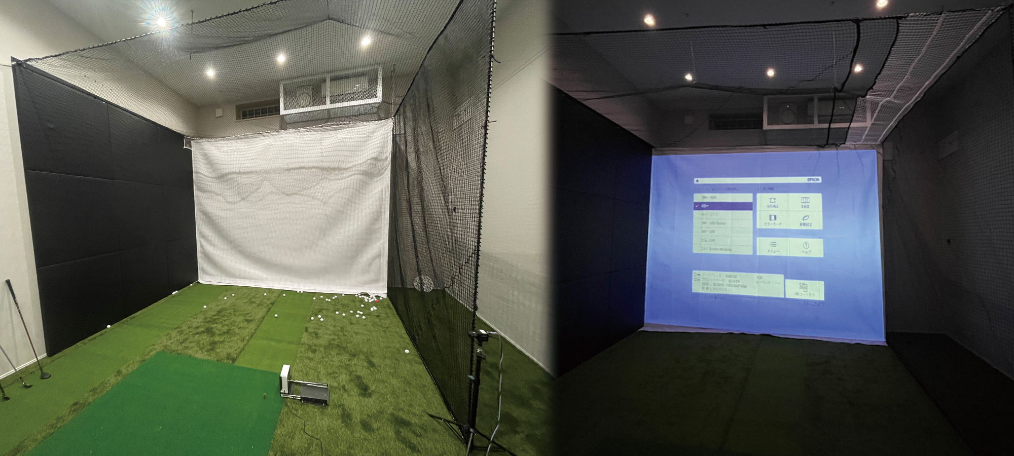Blackを記帳としたネットによるゴルフ専用部屋。後方の壁には、雰囲気を醸し出すためにコース写真を特殊印刷した壁紙を採用