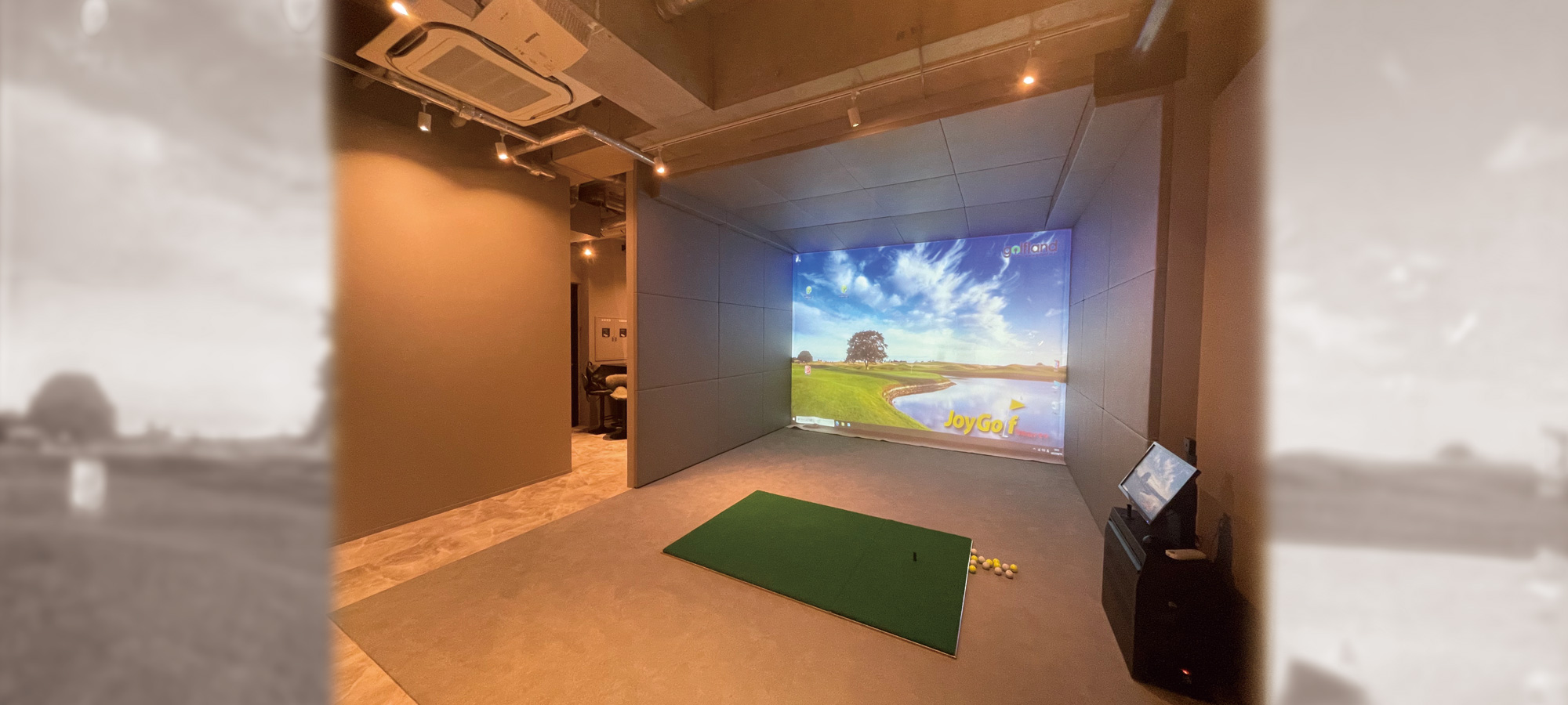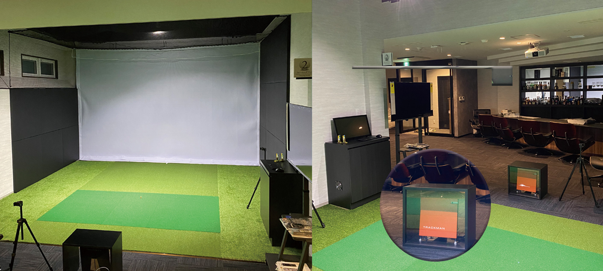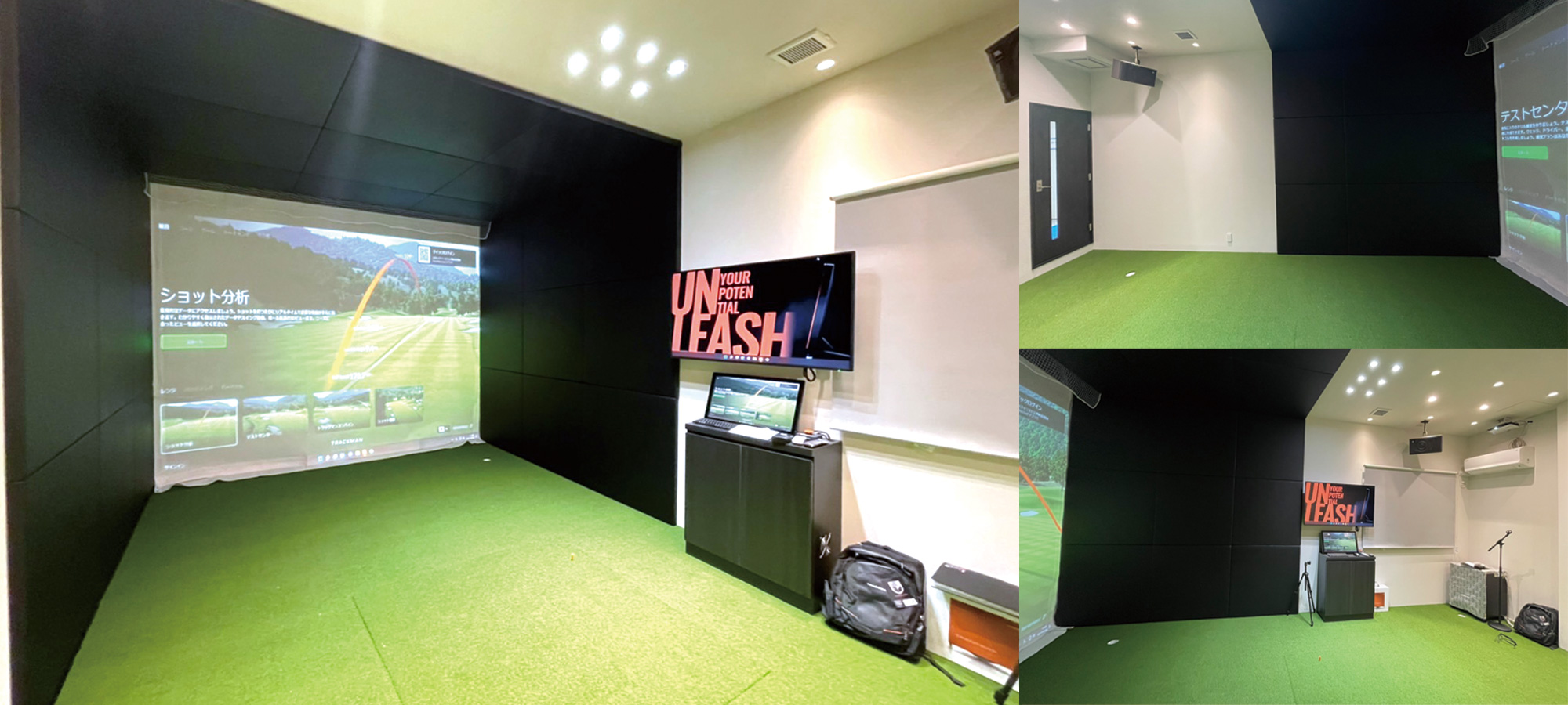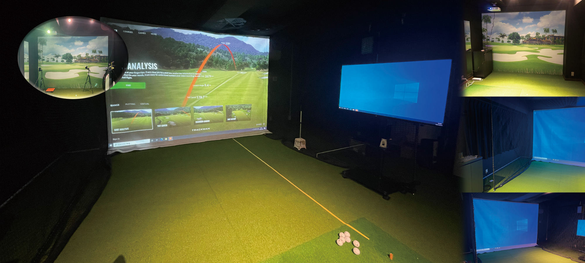 Blackを記帳としたネットによるゴルフ専用部屋。後方の壁には、雰囲気を醸し出すためにコース写真を特殊印刷した壁紙を採用