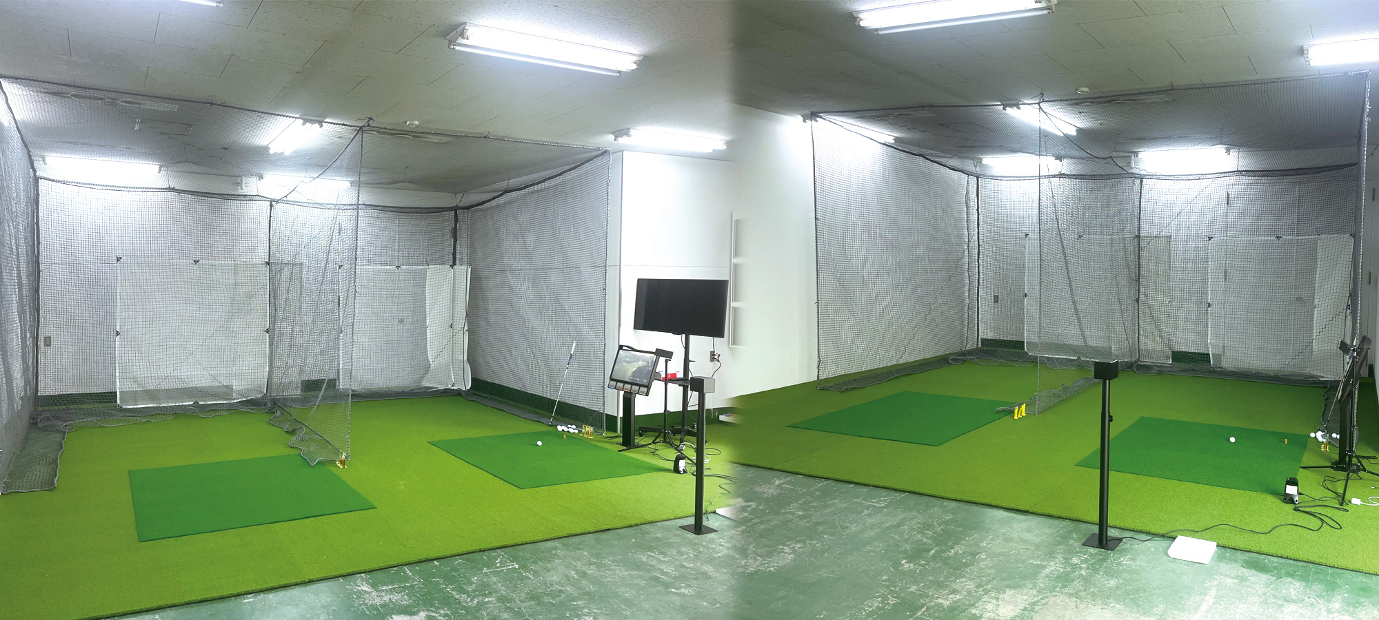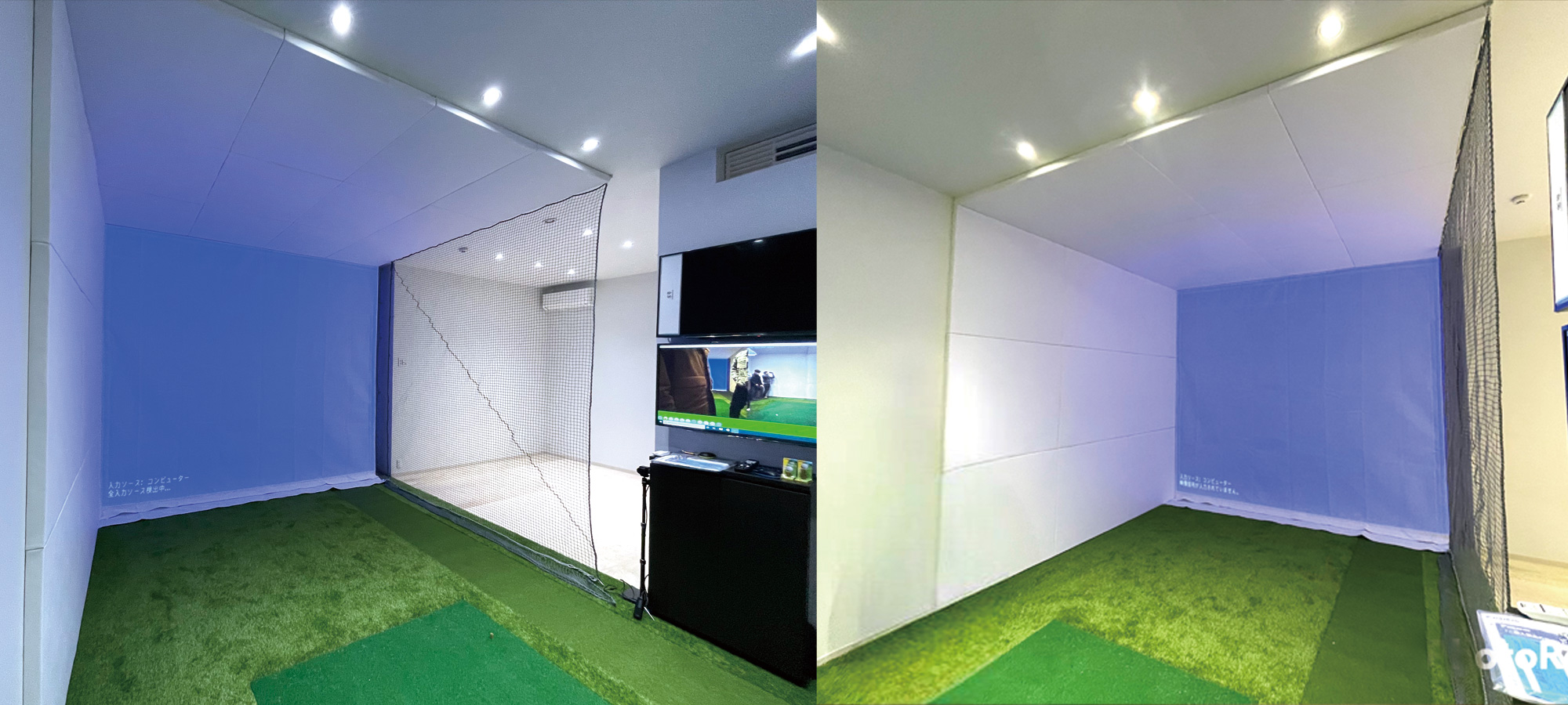 基本はクッションによるブース設計だが、スイング解析機も併用した為、打席部分の照度が必要になることからwhiteのネットを併設した仕様